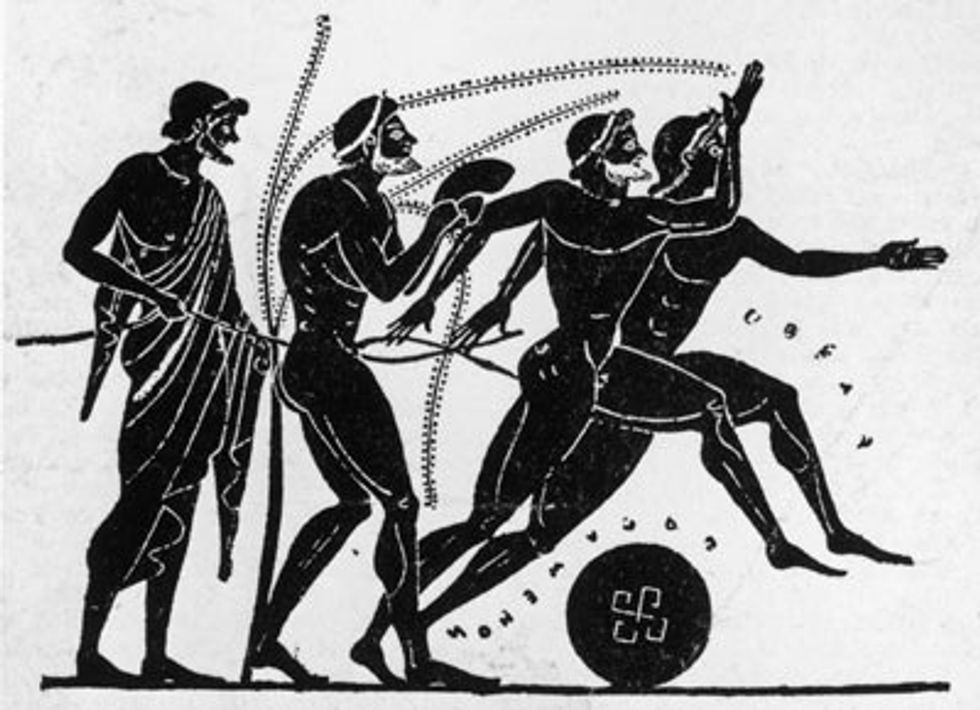 Pankration: combination of wrestling and boxing. Any maneuver was permissible except biting, gouging eyes, and hitting the genitals.