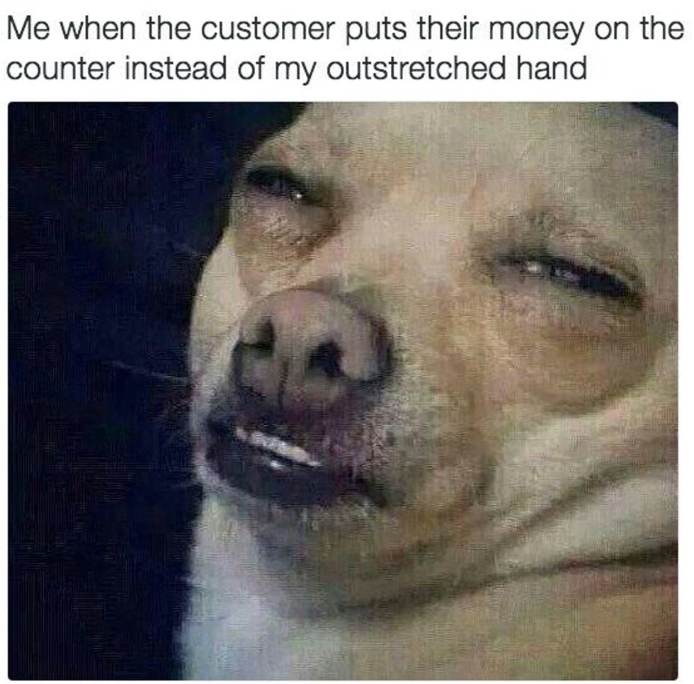 I have seen people hand bills to me in the strangest ways. From the bill facing down in an “n” shape, as if knowing what the bill is is a big secret, to the over the shoulder reach, to the folded up mess that often ends in me dropping bills everywhere. Please, please, please, just hand me the money normally. Wait the .5 seconds until you know that I have the money in my hand until you let go of it. Same goes for when I hand you change or a credit card back. Wait until you know you have it, and then I will let it go.