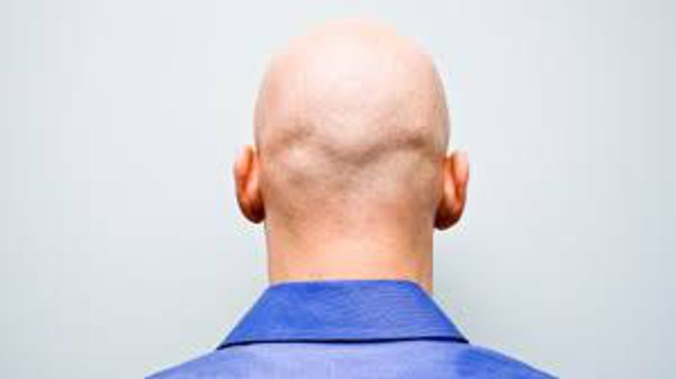 A description for a a bald person's head (which apparently looks liked pealed garlic...)