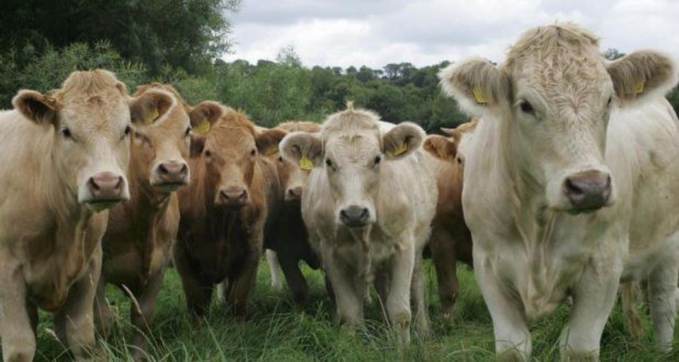 8. The Irish Moiled is a declining native breed in Ireland from the north. They are hornless and generally red with a white belly or freckled red-and-white face. "Moile" comes from a Gaelic word that relate to the bump on the cow's head. They're also basically garbage disposals and can consume and thrive on what is considered "poorer foliage."