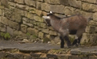 9. A hopping happy baby goat.