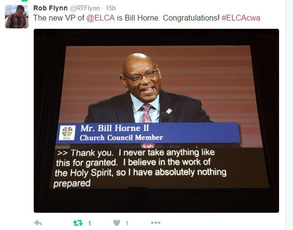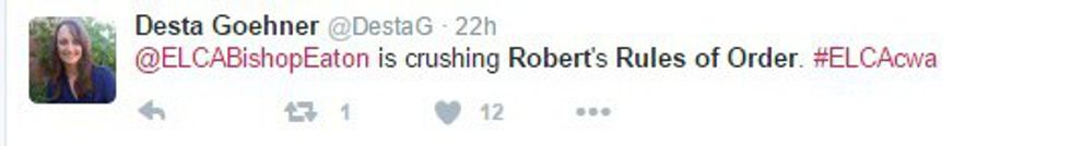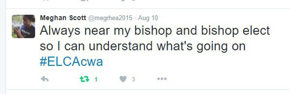 I have learned so much about Robert Rules of Order, the ELCA, the Lutheran World Federation, and the world. Thank you bishop, bishop elect, and vice president for proving so much insight into the assembly and everything.