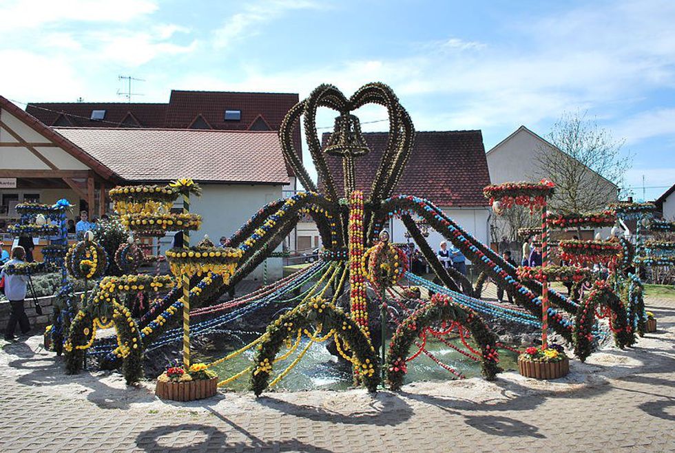 The Swiss celebrate Easter by decorating the wells in their towns and cities with colorful Easter eggs and flowers. The wells are decorated to show appreciation for water, which is essential for life.