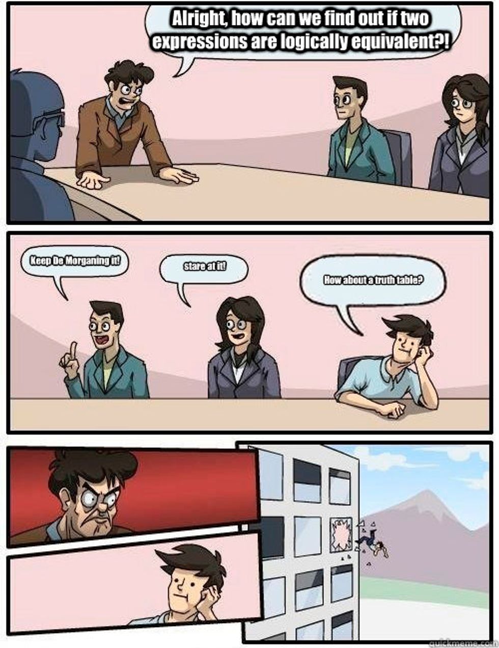 To be completely honest, I have to figure out if two statements are "logically equivalent" all of the time. And I can't do it without truth tables!