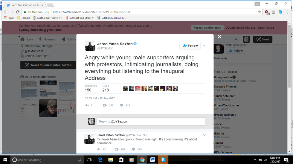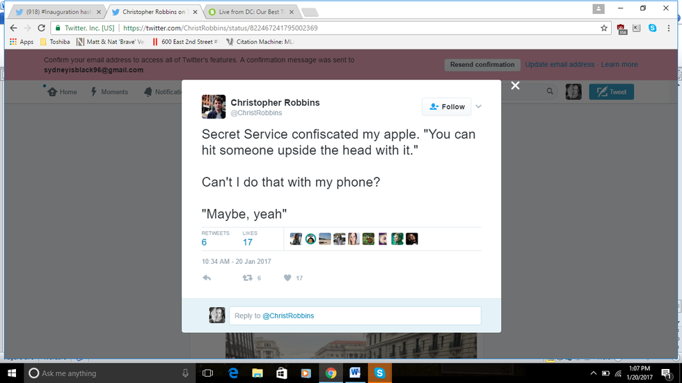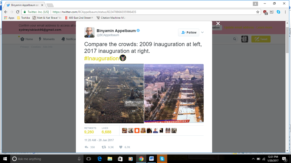 These are simply screenshots of tweets from reporters who attended the Inauguration of President Donald Trump this morning. I did not choose certain tweets based on biased opinion. All credit for tweets goes to the reporters who posted them online.