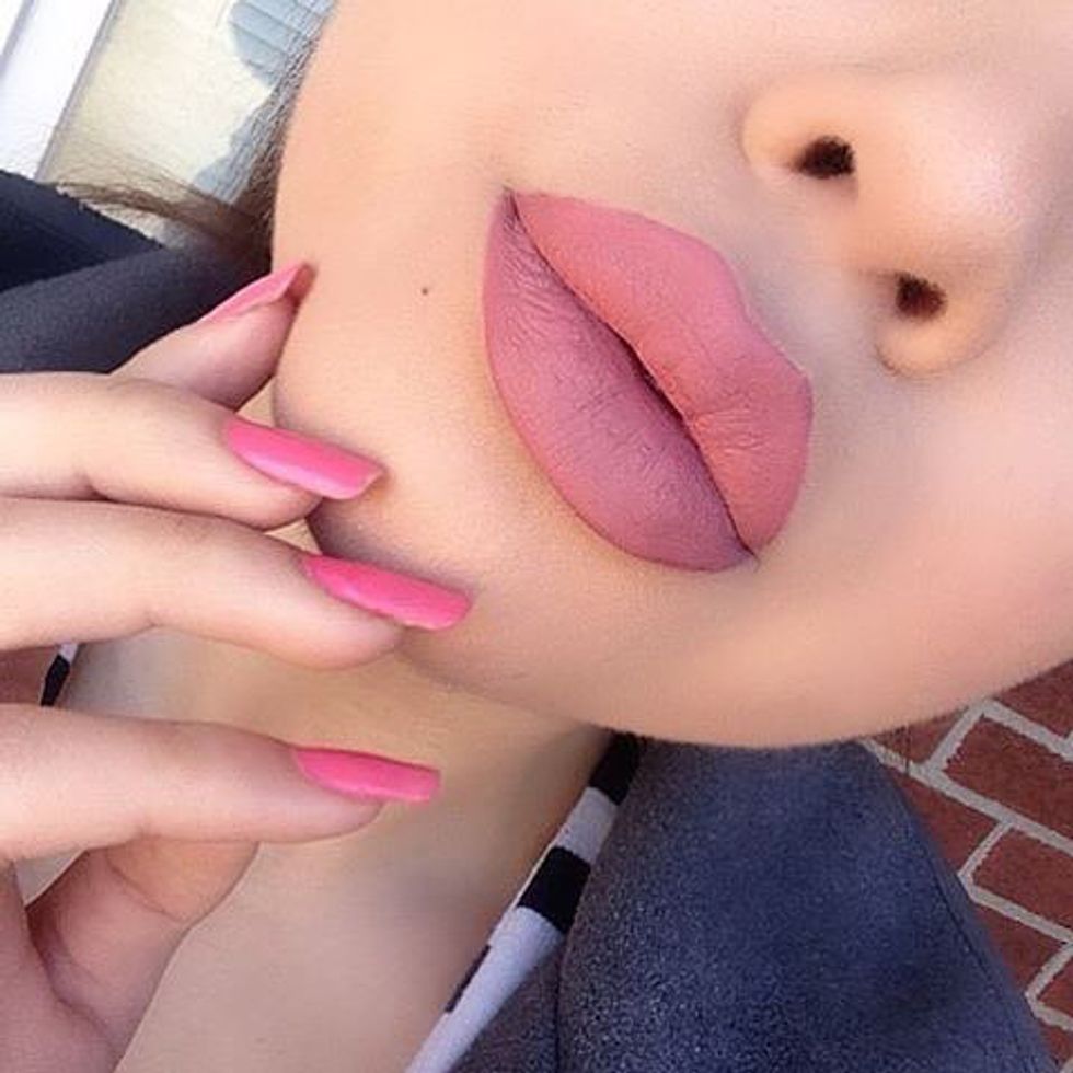Trying to pick one liquid lipstick is like asking to pick between food or water to survive: it's almost impossible. But here I am, making it possible. The Anastasia Liquid Lips only rose above it's competition because of it's brand and it's packaging. Almost every liquid lipstick on the market right now is priced between $18 and $22 and most of them have highly similar formulas. This makes it hard to determine which brand's product is better than the other. So, I basically looked through all of them and decided that this liquid lipstick has the best formula, color selection, packaging, brand, and smell. Let's look at this lipstick on someone with totally unrealistic lips, shall we?