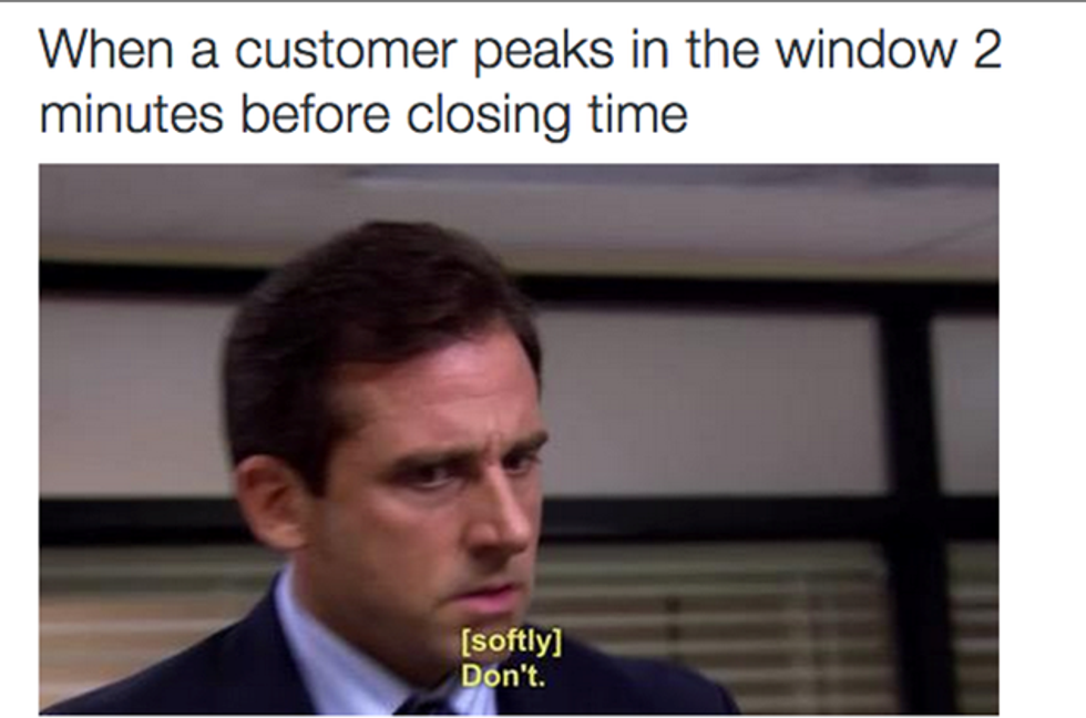 8. When it's slow and you start scaring away customers with your helpfulness.