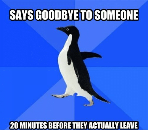 Because as you're saying goodbye, you remember 20 things you need to tell them.