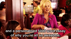If you are a "Parks and Rec" fan, like me, you will probably read all of these captions in the character's voice. If you are not a "Parks and Rec" fan, well, you need to get on Netflix and watch it because you are missing out. Anyway, with spring break just around the corner, I thought that I'd make a list of relevant "Parks and Rec" GIFs that are relevant in our college lives. Remember, when in doubt, treat yo' self!