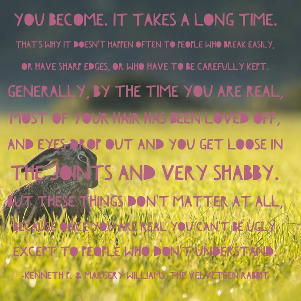 1000% the best and most underrated children's book ever written. This passage about becoming "Real" hit me real hard when I re-read it last year. There's something extraordinary about being loved so much that nothing outside of that love matters. Kind of gives you hope. I'm also holding out on the fact that my childhood toys moved and talked and lived their lives when I wasn't around... although I could never quite prove it...