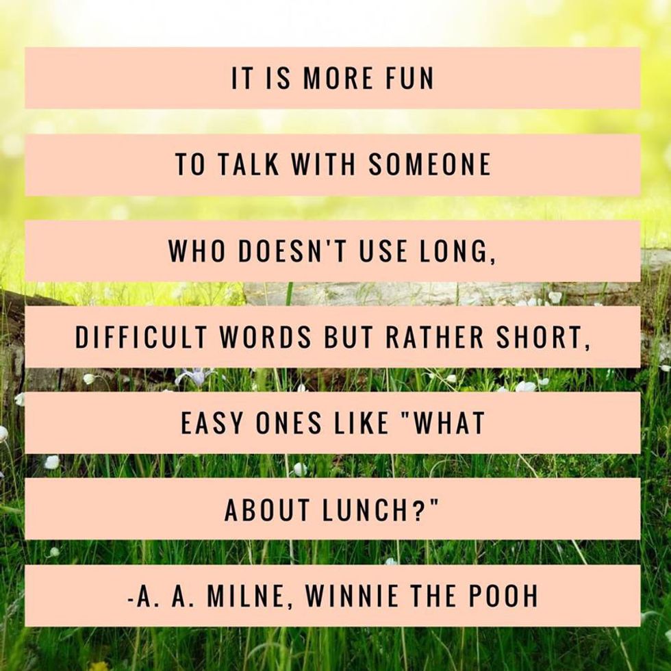 What would a list of children's stories be without mention of Winnie the Pooh? There are so many beautiful quotes from the adventures of this honey-loving bear, but this one really sums it all up. After all, what is life about if we can't enjoy a simple meal catching up with an old friend?