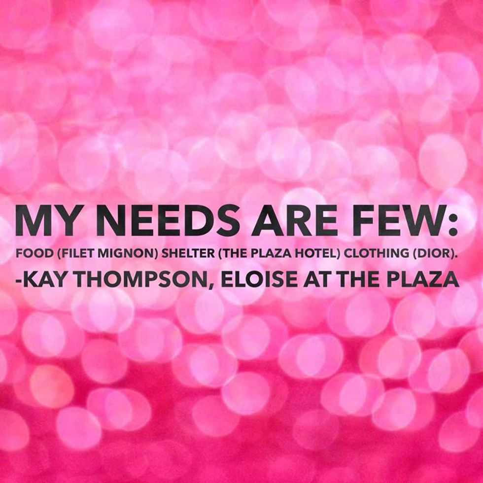 Ah, Eloise. A girl after my own heart. This shining sense of pragmatism would put even Maslow to shame. Show us that hierarchy, again? Eloise has got it down pat.