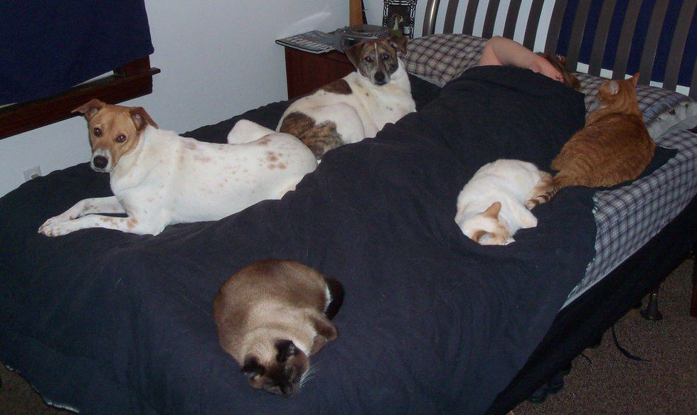 Pets are known for claiming well over half of the bed, which can be irritating if you're already in bed, but great if you're not there yet and they're warming up the sheets for you.