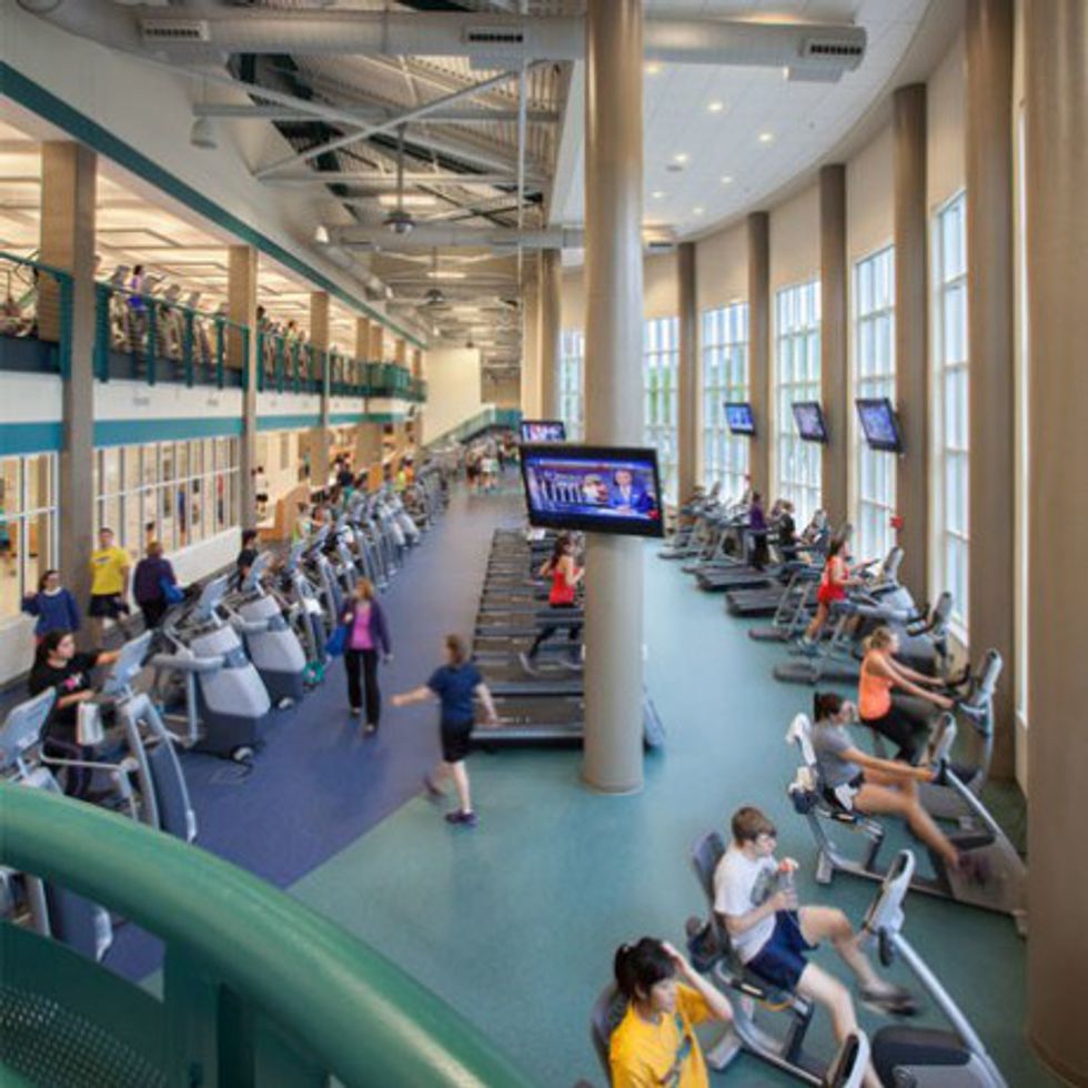 The student recreation center contains an abundance of machines, basketball courts, an indoor track, pool, weight training machines, racquetball courts, group exercise rooms, and more. It makes gaining the freshman 15 a lot more difficult!