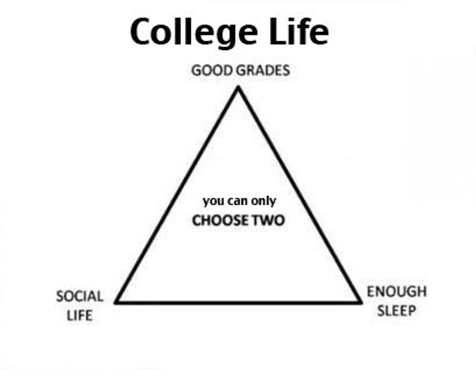 2. You are the perfect example of: “Choose between having good grades, a social life, or getting enough sleep to function properly”.