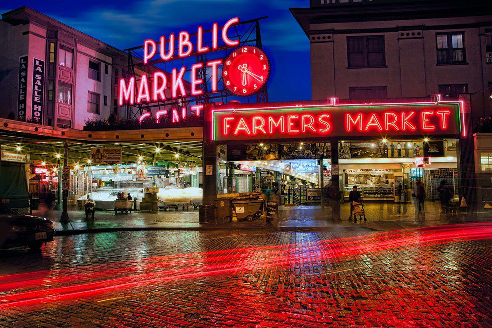 Got a thing for rainy weather? Get a glimpse of the famous Space Needle and Public Market ... as well as the original Starbucks!