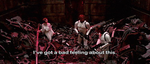 The phrase "I have a bad feeling about this" or "I have a very bad feeling about this" is said in every Star Wars movie.