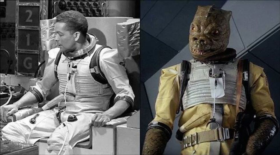 The bounty hunter Bossk’s clothing is a recycled spacesuit from Doctor Who.