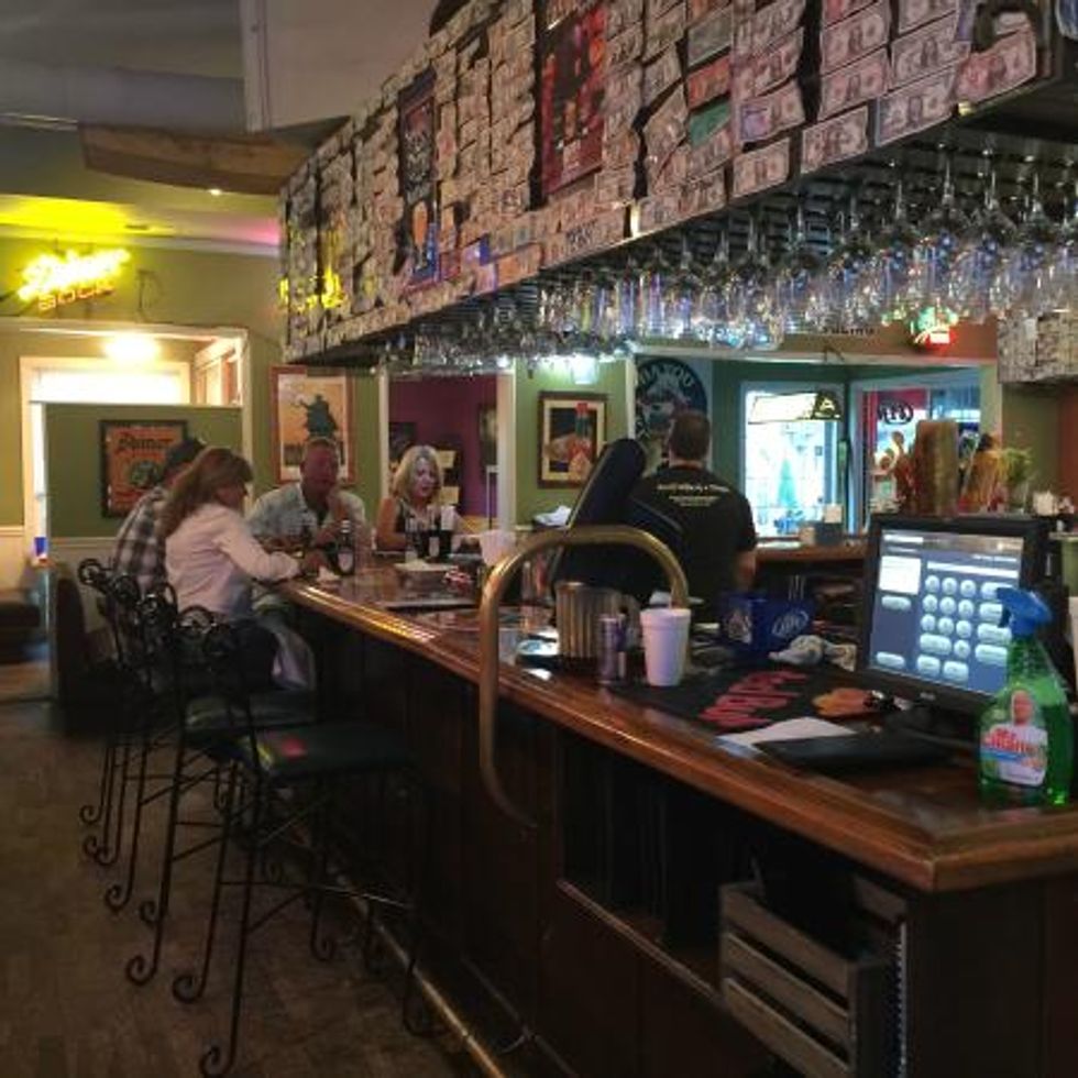 A common bar practice but the Bayou, located just a couple hundred feet from campus, is the only one in Banner Elk that does this. It's pretty surreal looking up and seeing all the names of alum who have scribbled their names on this little bit of currency.