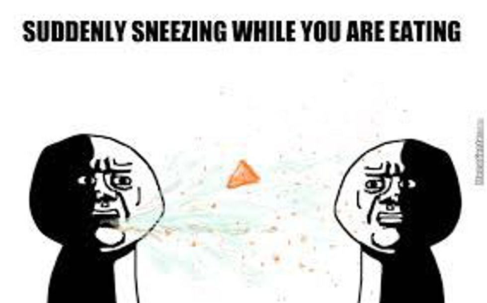 A big mistake people make while sneezing and coughing, is using their hands to cover their mouth. People think they are protecting others from their germs, but more often than not, people sneeze in their hand and then shake someone's hand with their snotty hand, which spreads germs. In general, you should not touch other people while you are sick.