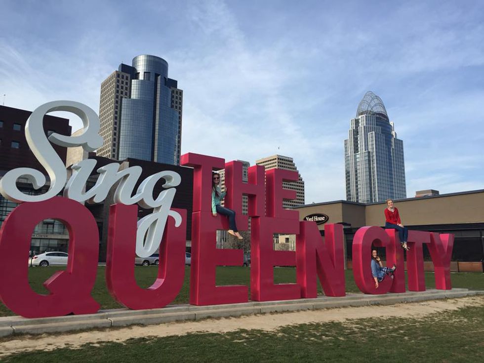 As a part of the CityInk project, this sign is set up right in front of the Roebling suspension bridge. This bright, 3-D sculpture is actually just a fraction of a whole poem that has been “inked” on several other locations in Cincinnati. This sign makes for a super cute photo op for you and your friends.