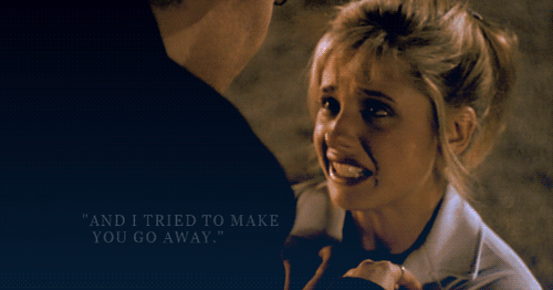 Buffy: "I didn't mean to push you away, I didn't! I just... I couldn't let you see me."