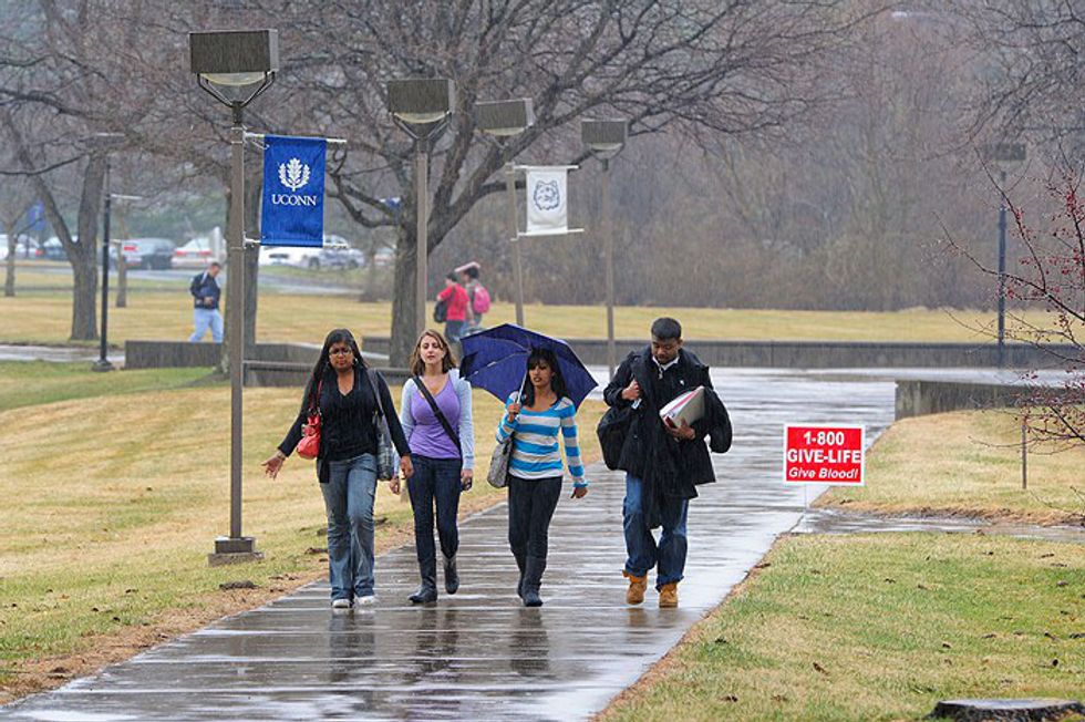 It rains every Tuesday in Storrs. No exaggeration. Make sure you have rain boots, a rain coat, umbrellas (multiple because they will break from the wind) and any other items you think will be useful. It rains a lot.