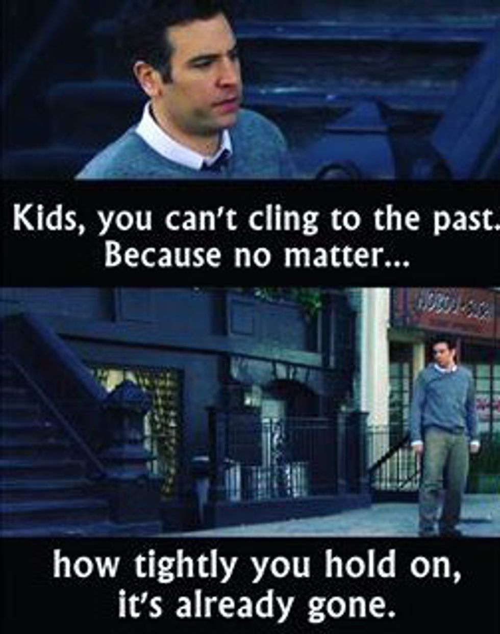 How I Met Your Mother, Ted Mosby -- "Kids, you can't cling to the past. Because no matter how tightly you hold on, it's already gone."
