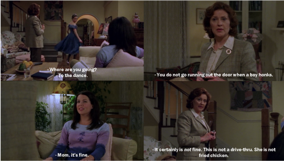 Gilmore Girls, Emily Gilmore -- "You do not go running out the door when a boy honks."