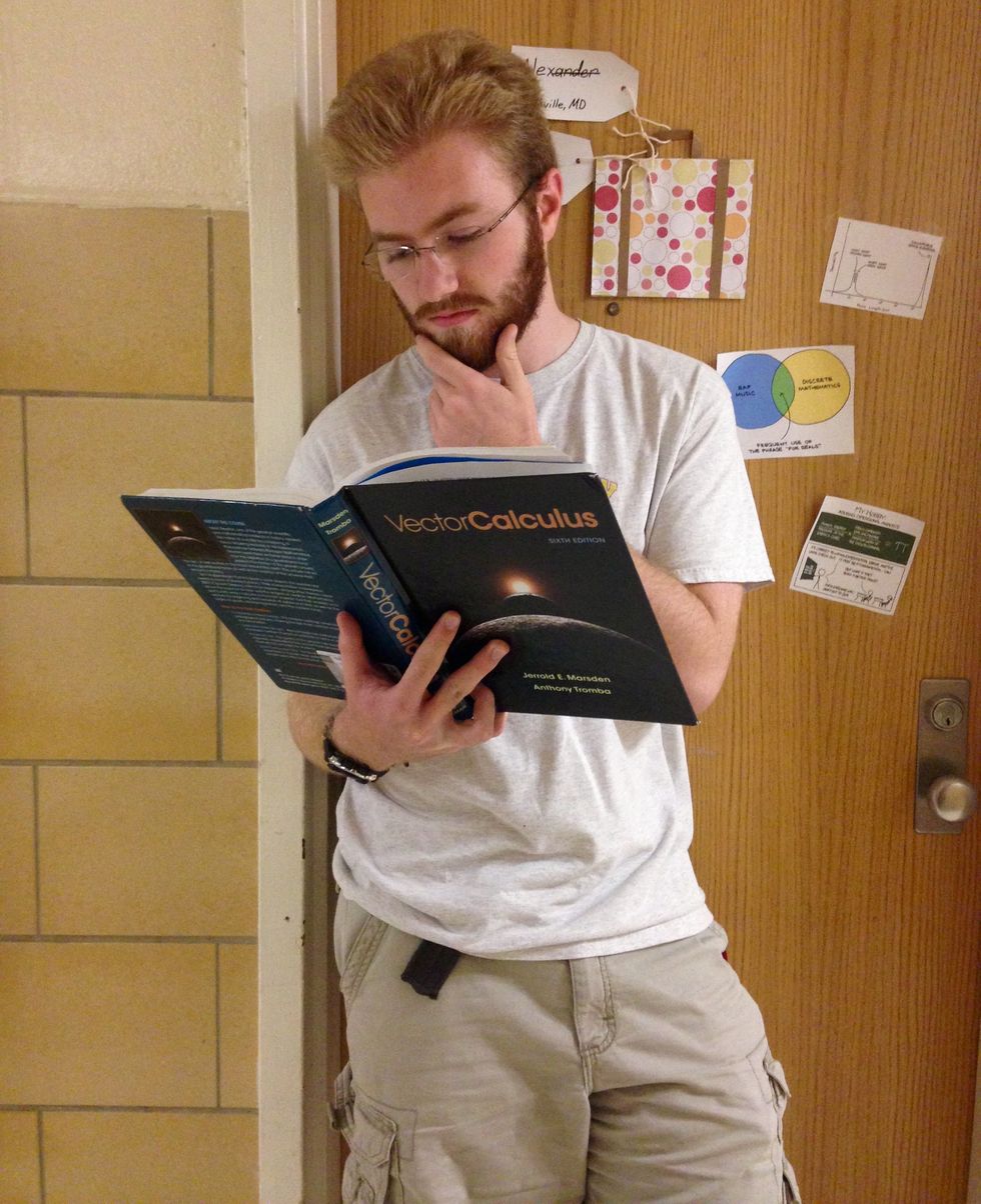 It’s no secret that this guy is by far the smartest one on your floor. If you couldn’t tell from his exceptional grades and the giant stack of books on his desk (vector calculus, anyone?), his love of math humor and chemistry one-liners definitely seals the deal.