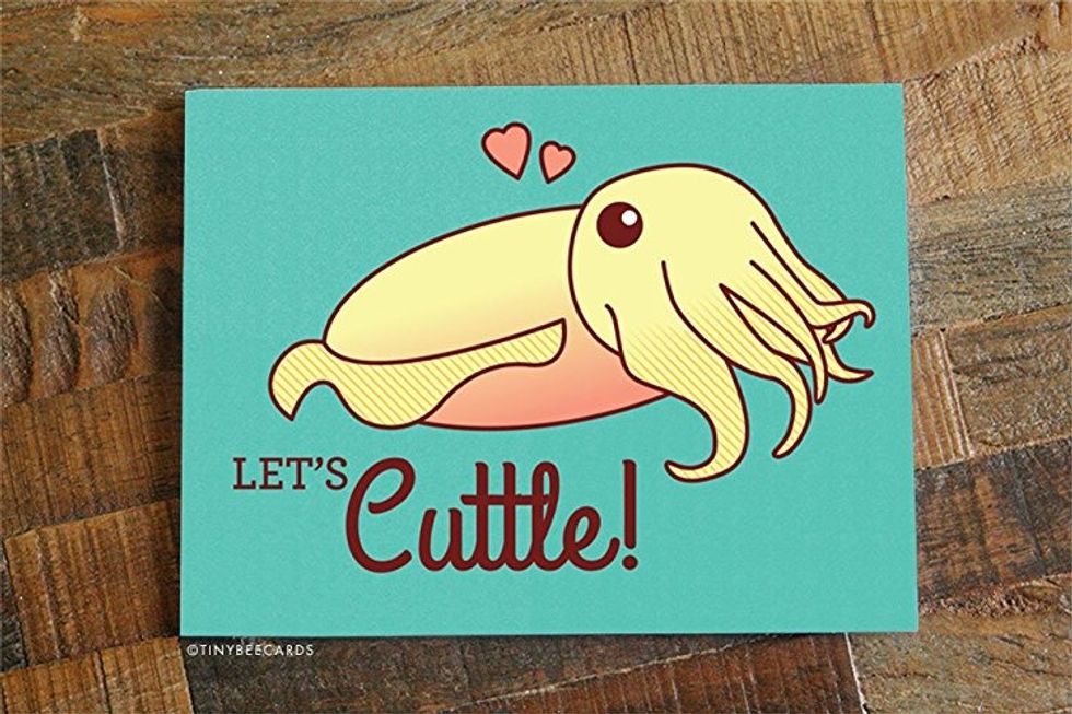 There's a fine line between a good pun and a dad joke, but that's the last thing you want to think about when you are gazing into your lover's eyes as they chuckle at the fact a card that so cleverly marries marine life and human affection.