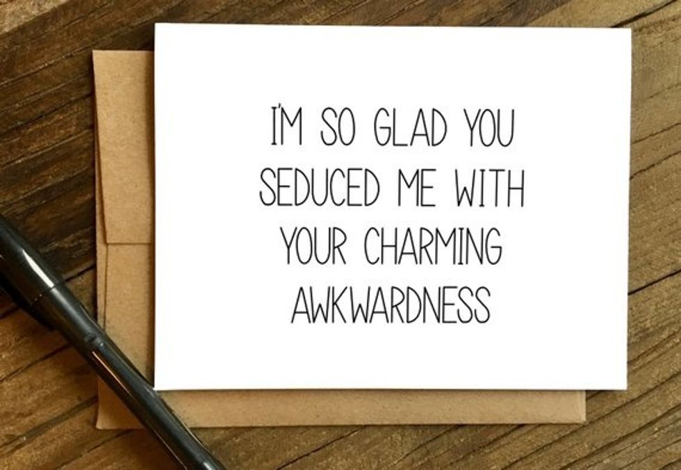 If you are not one of those women and your boyfriend/husband is not expecting you to shave your legs, surprise him with this card that shares your surprise for him while still maintaining your quirky sense of humor.