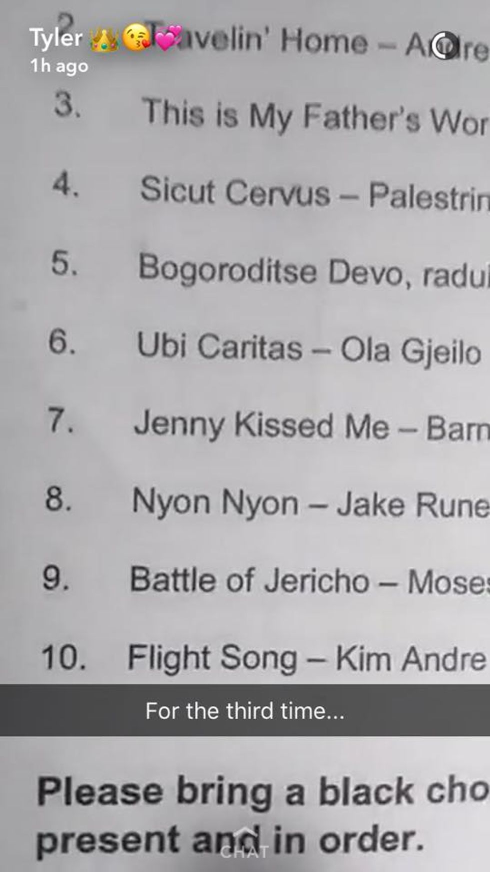 When you first look at the folder you roll your eyes and sigh. Another festival with music that looks boring or too crazy for high school students. When you're practicing the music you constantly want to rip it and throw it out, but it costs $50 to replace each piece. By the time the concert comes, you're crying because you realize how beautiful every single note is and you never want to let it go.