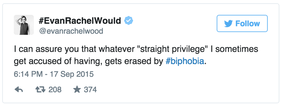 Now this sort of comment is rooted in some seriously gross assumptions that are just completely untrue and generalizing. It's not a privilege to have your identity constantly invalidated and degraded. And here is Evan Rachel Wood adding another striking response to this inaccuracy: