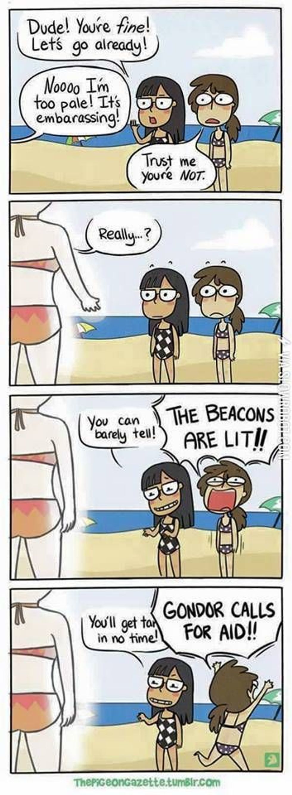 8. People always compare their tans to your lack thereof.