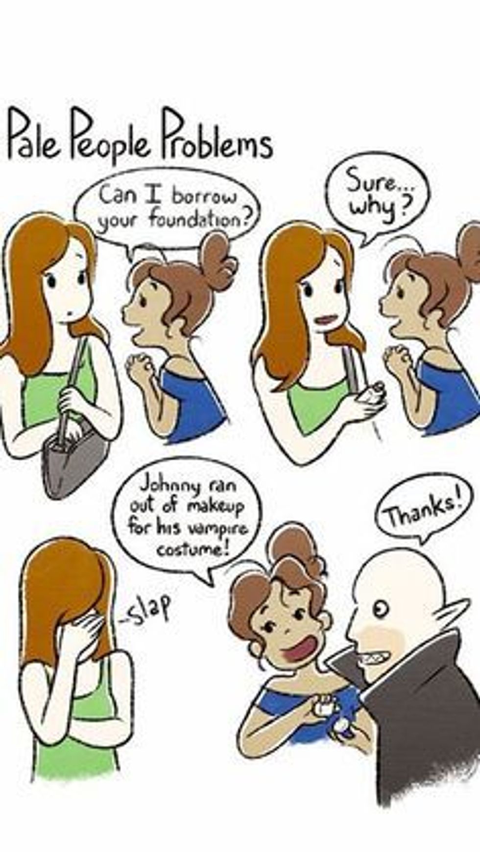 While tanning is impossible, burning is the easiest thing in life. With that sunburn comes awful burn lines (in multiple places since you burn each day) that practically last until next summer.13. All foundations are too dark for you.