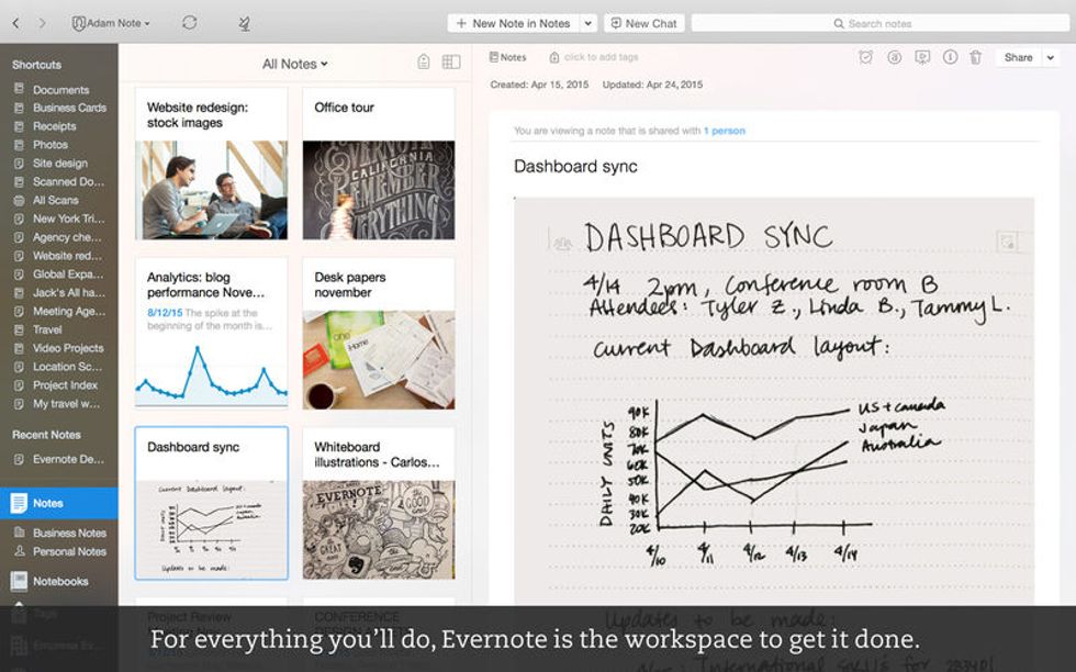 Evernote is similar to the previous apps mentioned except that it encompasses it a lot more. Besides being apple to organize your lists with reminders and collaborate with others, Evernote allows you to integrate notes, tables, attachments, audio recordings even handwritten notes. However, if you want all of these specs, you have to pay. It's free to sign up but the plus, premium and business accounts will cost you. Find their prices here.