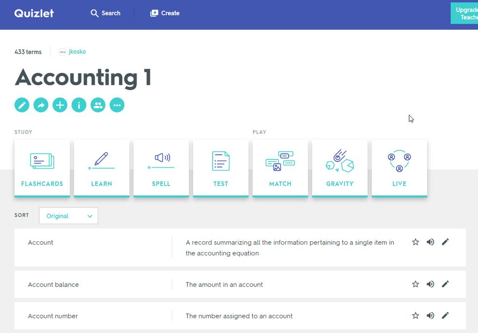 Quizlet is just like StudyBlue in that it helps you study via flashcards. However, if you want StudyBlue and all of its specs (StudyBlue Pro) you have to pay. Quizlet, on the other hand, includes a lot of different options such as voice recording to help you study your flashcards, games and diagrams (all of which are free to use). I personally prefer Quizlet over StudyBlue but hey, everyone has their preferences.