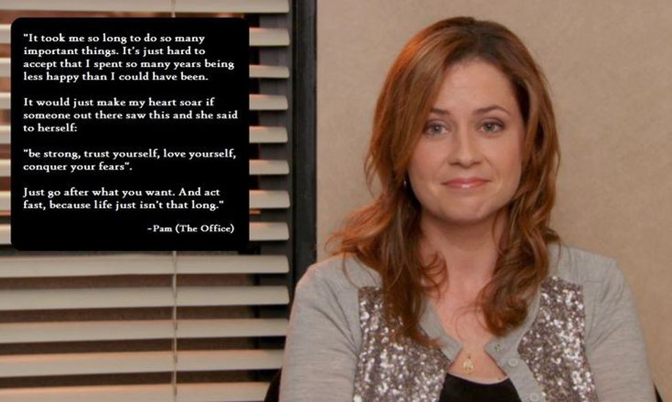 6. Don't spend any part of your life being less than happy, people!!! Pam didn't act on her feelings and she could have been so much happier so much sooner. The lesson in this- do what makes you happy.