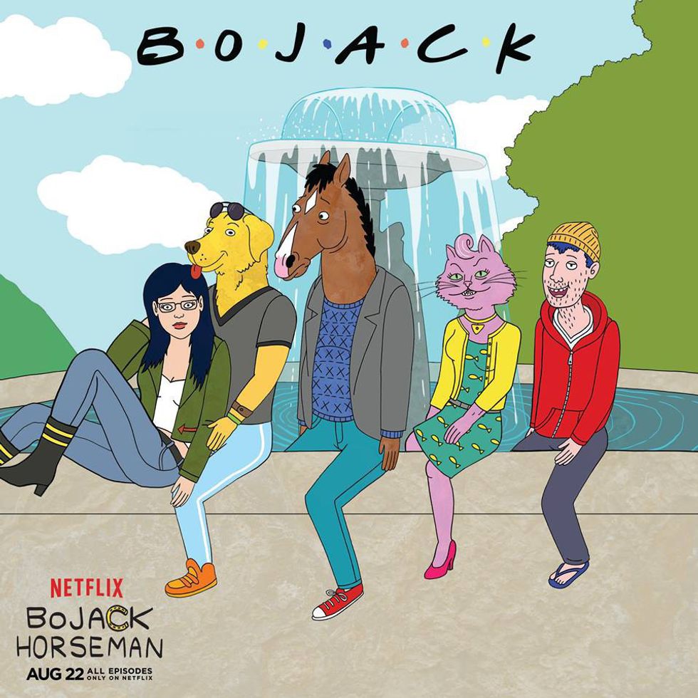 The titular character is that horse fellow in the middle. Back in the '90s he was the star of a TV sitcom called "Horsin' Around," but now he just sits around his mansion drinking and feeling sorry for himself. It's dark but funny and has likable characters with great names such as Mr. Peanutbutter and Officer Meow Meow Fuzzyface (yes, he's a cat).