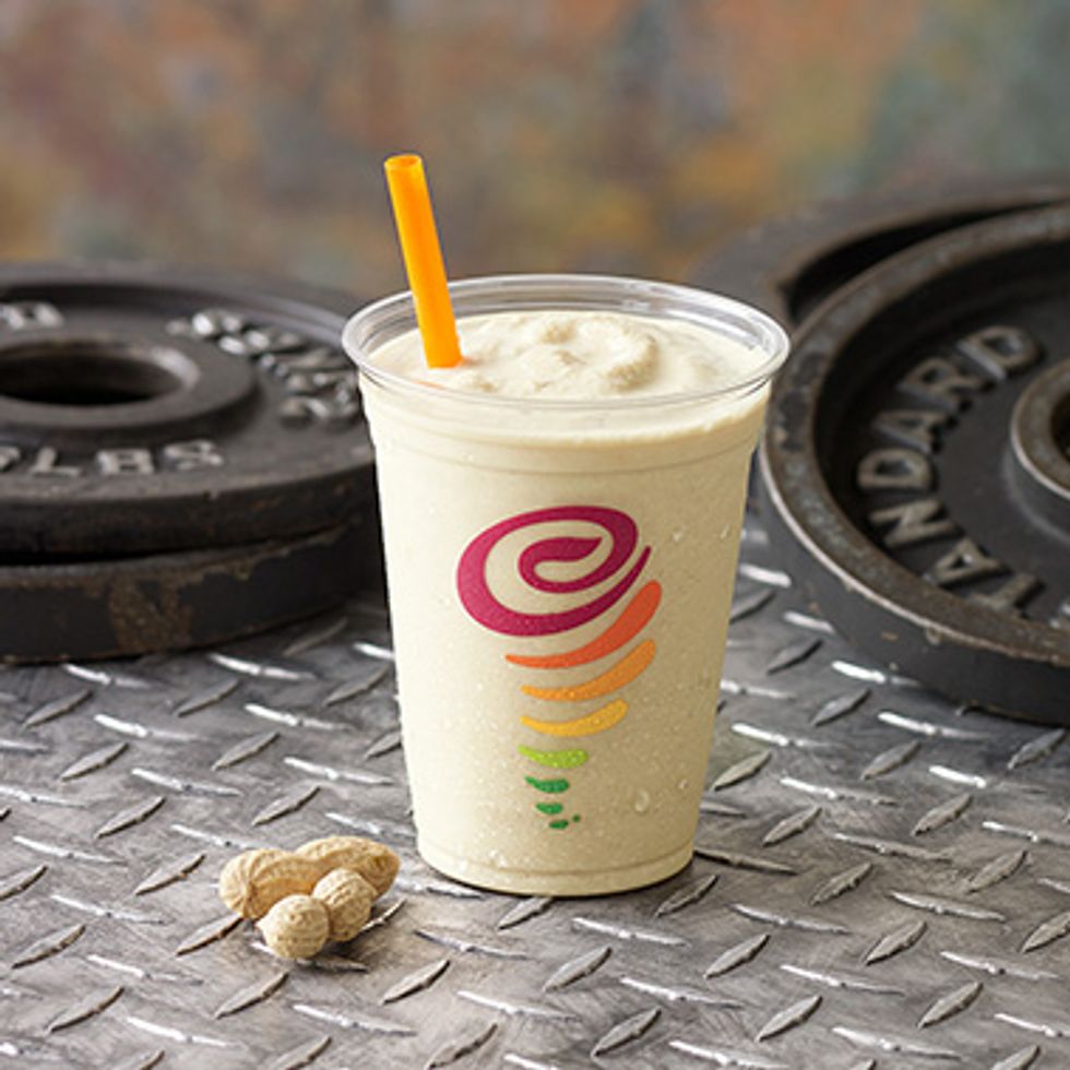 The PB Banana is one of the protein smoothies that is offered at Jamba Juice. It is composed of 2% milk, peanut butter, whey protein, honey, and bananas. Whether you are getting it post-workout or just for fun, this smoothie is definitely a good source of protein.