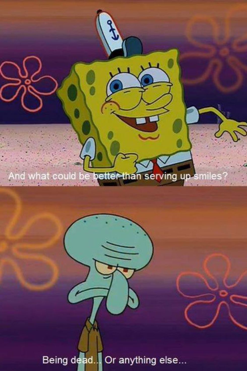 10. When Spongebob was just trying to cheer Squidward up after getting fried from the Krusty Krab: