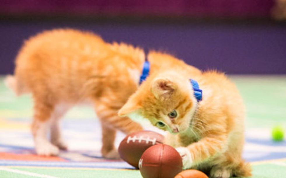10. These cats don't quite understand football, but they're going to try their best