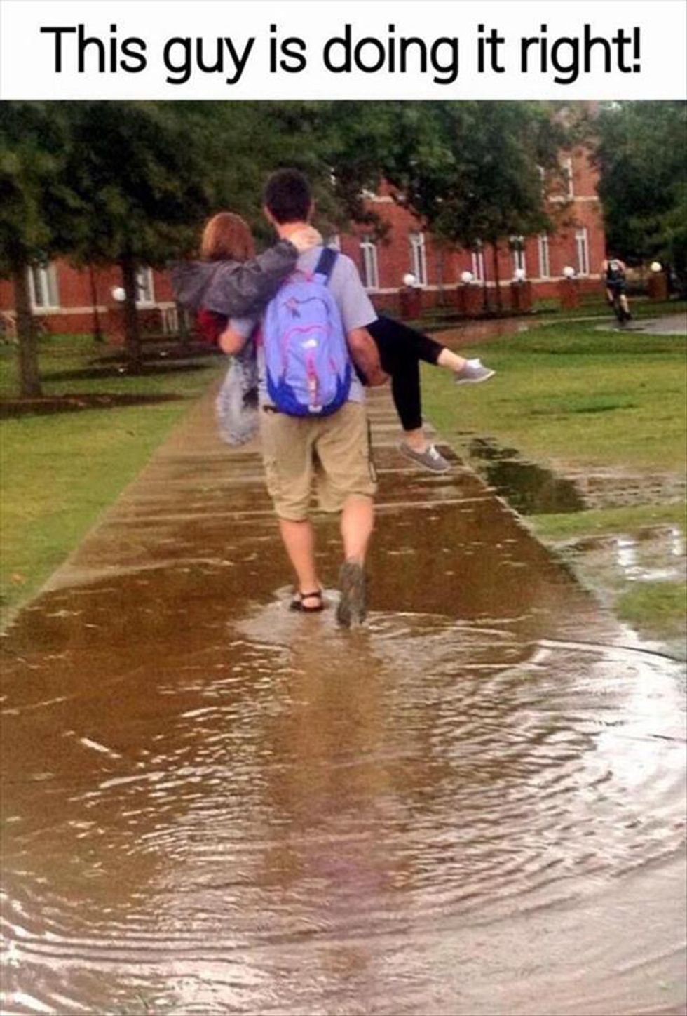 13. Walking on the outside of the sidewalk, especially if it’s rainy and there runs a risk of having a passing car splash you both with gross road water.