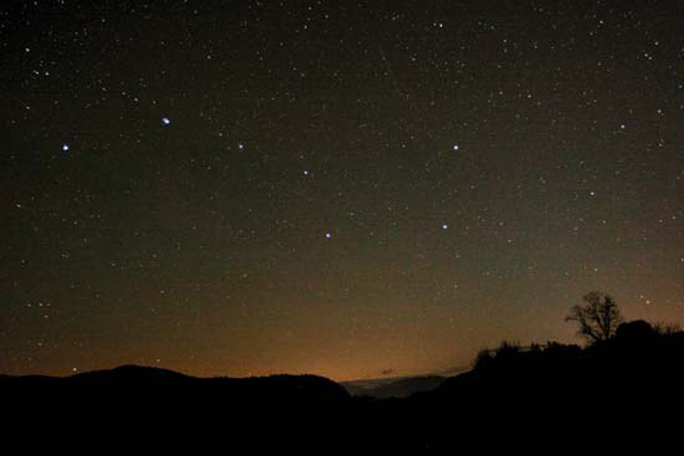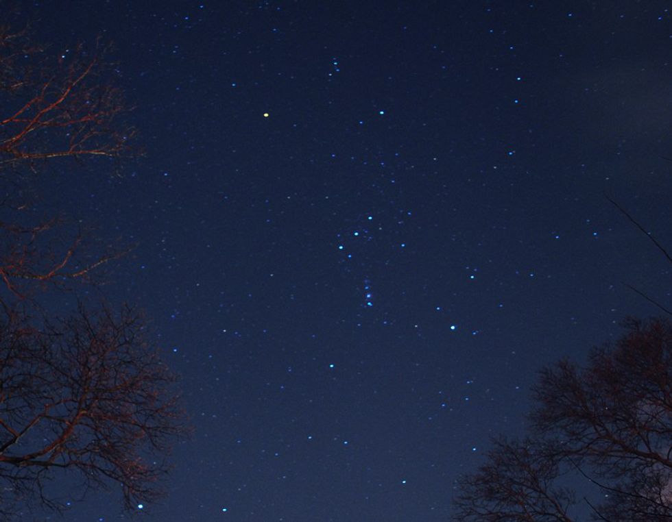 When to see it: Winter and early Spring. The hallmark of Orion is his belt, composed of three stars in a slightly skewed line. Adjacent to these are four stars, two on the top, and two on the bottom forming his arms and legs.