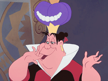 I'll be honest, I've never really understood why the Queen of Hearts is so upset. Every other Disney villain is evil because they're seeking revenge or want to take over a kingdom, but the Queen of Hearts already rules over a kingdom... and as far as I can tell Alice hasn't done anything to her to warrant vengeance. So pretty much what we have here is a sadistic psychopath with too much control.