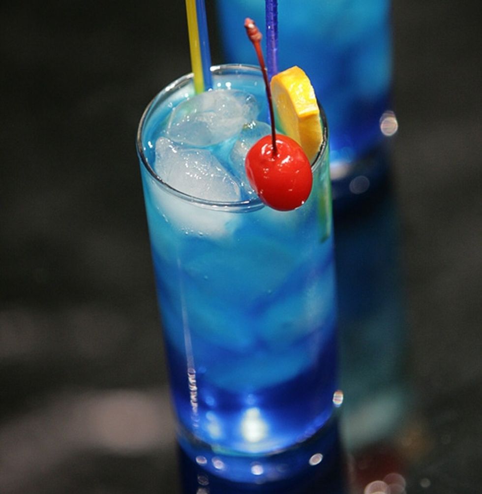 You’ll only need 3 ingredients plus ice; 1 ounce of Coconut Rum, 1 ounce of Blue Curacao, 2 ounces of pineapple juice, some ice & some pineapple and maraschino cherries to top!
