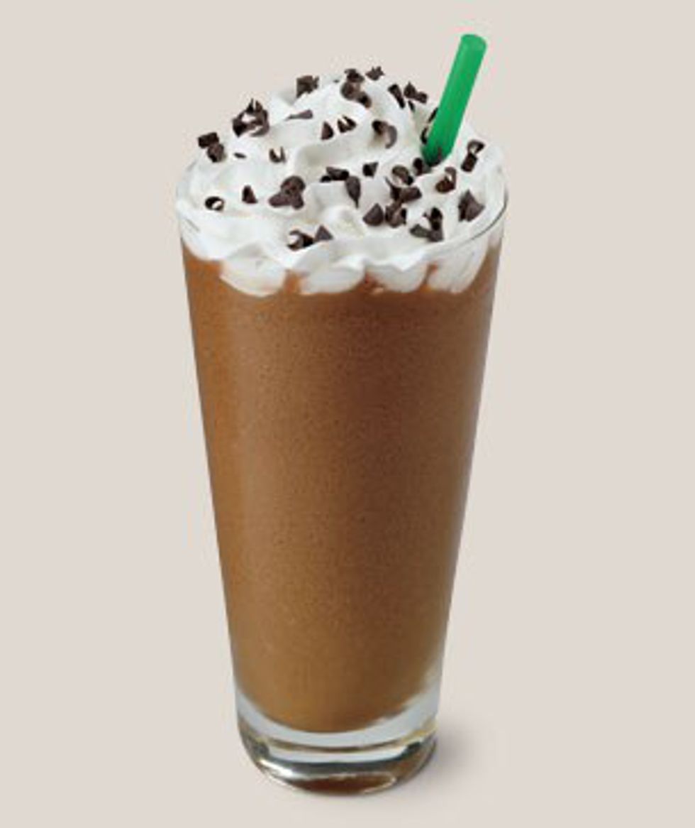 Loaded with caffeine (espresso), this drink consists of espresso poured over ice and mixed with white chocolate. It is definitely your best bet for a large amount of caffeine and is pretty universal.