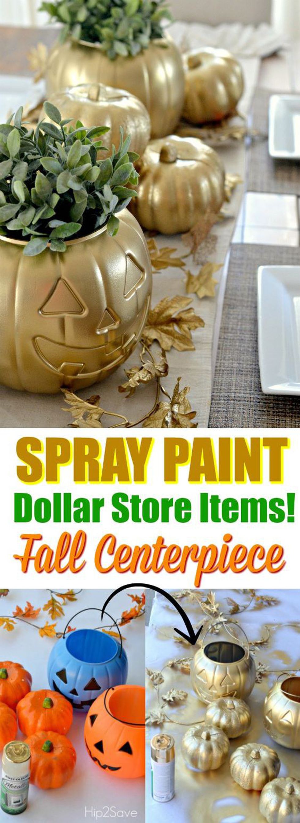 If you are on a budget, but are seeking modern decor, the dollar store might surprisingly be first on your list. This DIY turns trick or treat baskets into flower pots or centerpieces. (Budget DIY Ideas)