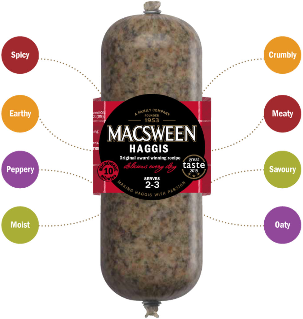 “Haggis is a savoury pudding containing sheep's pluck (heart, liver and lungs); minced with onion, oatmeal, suet spices, and salt, mixed with stock, traditionally encased in the animal's stomach though now often in an artificial casing instead.”(Wikipedia)